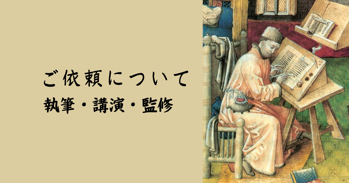 当ブログでは、歴史・文化・文学に関する執筆・講演・企画協力 などのご依頼をお受けしています。中世ヨーロッパやヨーロッパ文化を中心に、作品考察・文化解説・歴史背景の整理など、専門性が必要とされる内容について、分かりやすく丁寧にお伝えすることを大切にしています。